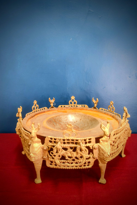 یک عدد منقل برنجی با تراش دقیق و زیبا به شکل سر شیر، بدون ایراد و مشکل