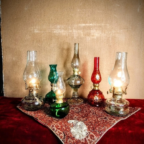 مجموعه شمعدان و چراغ موشی سبز قدیمی